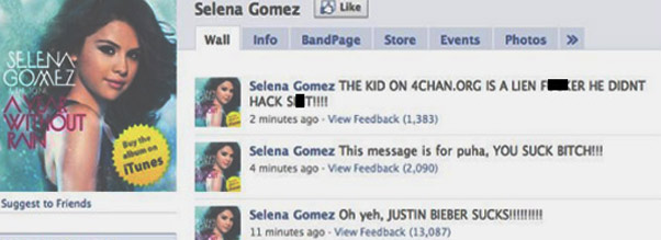 Selena Marie Gomez é uma atriz, cantora, compositora e estilistanorte-americana.Como atriz, é mais conhecida por sua personagem de Alex Russo, na série Os Feiticeiros de Waverly Place exibida pelo Disney Channel. Ela também co-protagonizou filmes como Outro Conto da Nova Cinderela, Programa de Proteção para Princesas, Os Feiticeiros de Waverly Place: O Filme, Ramona and Beezus e Monte Carlo.Selena também tem uma carreira de cantora e já gravou algumas músicas para a Walt Disney Records, como "Cruella de Vil", "Fly to Your Heart" e "Send it On". Além disso, em 2009, com sua banda Selena Gomez & the Scene fechou contrato com a gravadora Hollywood Records. Em 29 de setembro do mesmo ano lançaram seu primeiro álbum, Kiss & Tell, que vendeu 66.000 cópias na primeira semana ocupando a posição #6 da Billboard 200,e, mais tarde, foi certificado Ouro pela RIAA. Em 2010, lançou seu segundo álbum, A Year Without Rain, que estreou na quarta posição da Billboard, com o mesmo número de vendas do primeiro álbum.